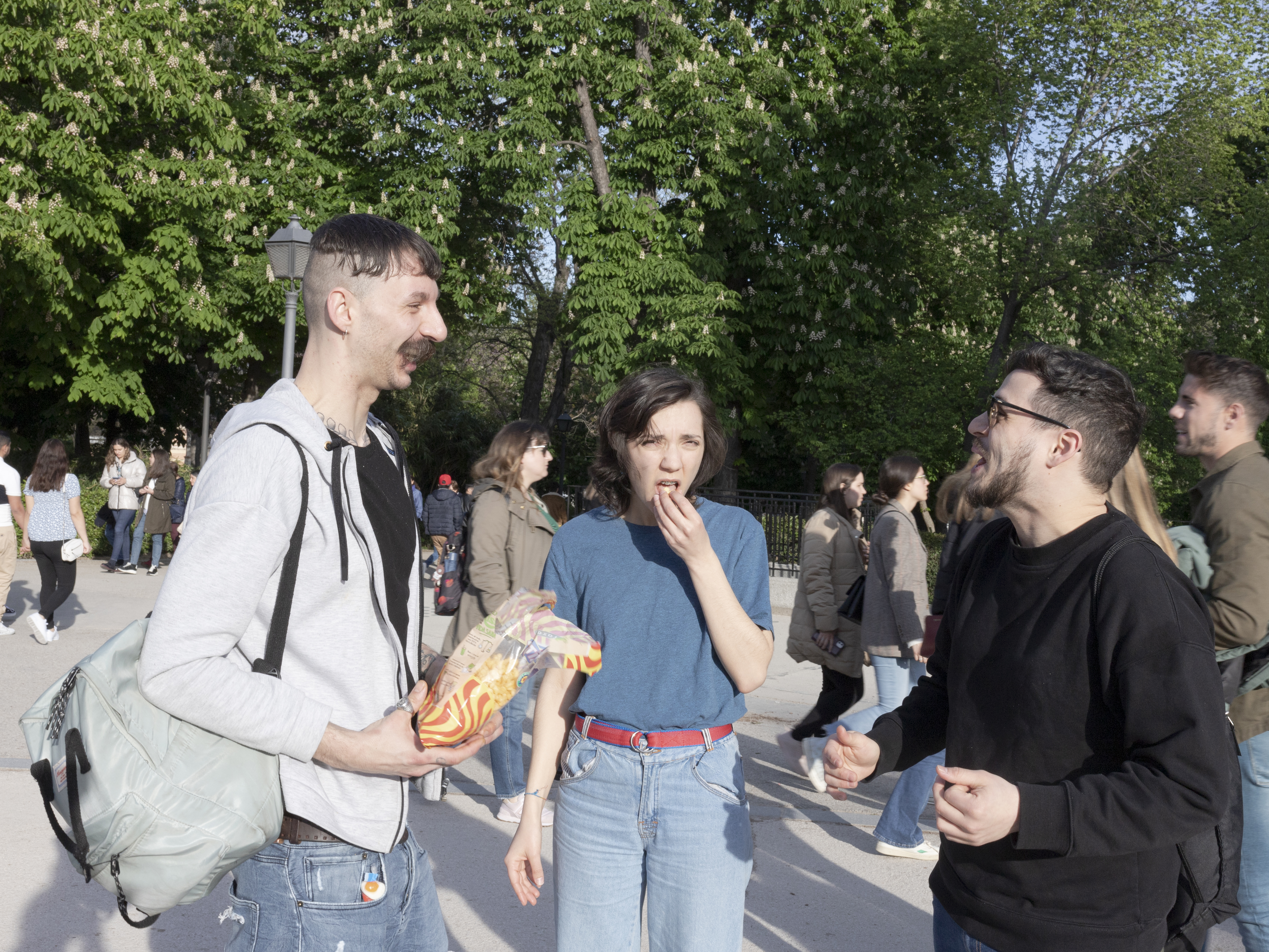This performative action of asking strangers who is my friend, my sister, my father, my boyfriend, my daughters for a few minutes may reveal things. In the end, asking Monti not to listen to me when I tell her that I don't want to, that I don't dare, that I can't get close to people and that she is the one who forces me, may end up revealing things and secrets so that I understand.
